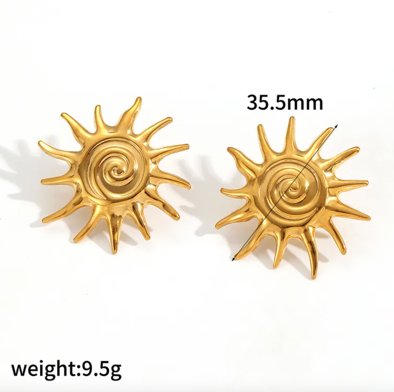 Discover the Direct to Sun earrings, designed for those who carry their own light. These captivating earrings are a bold statement of confidence, featuring an intricate spiral design that reflects the sun's vibrant energy. More than just an accessory, they are a powerful symbol of vitality, warmth, and individuality.