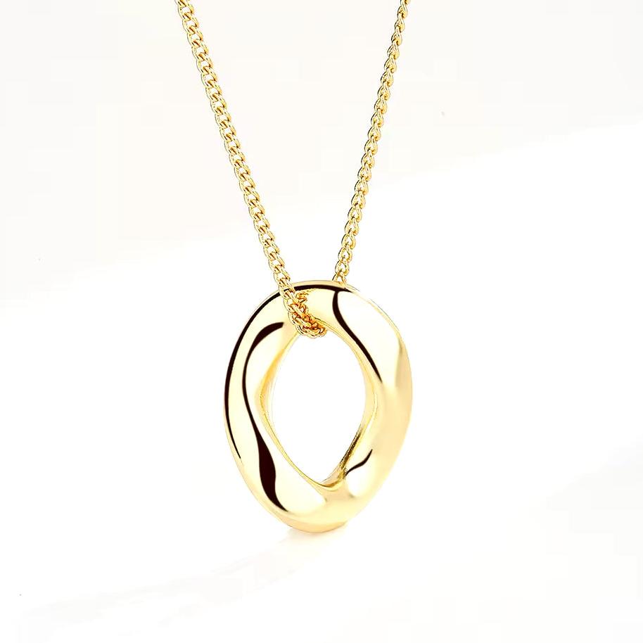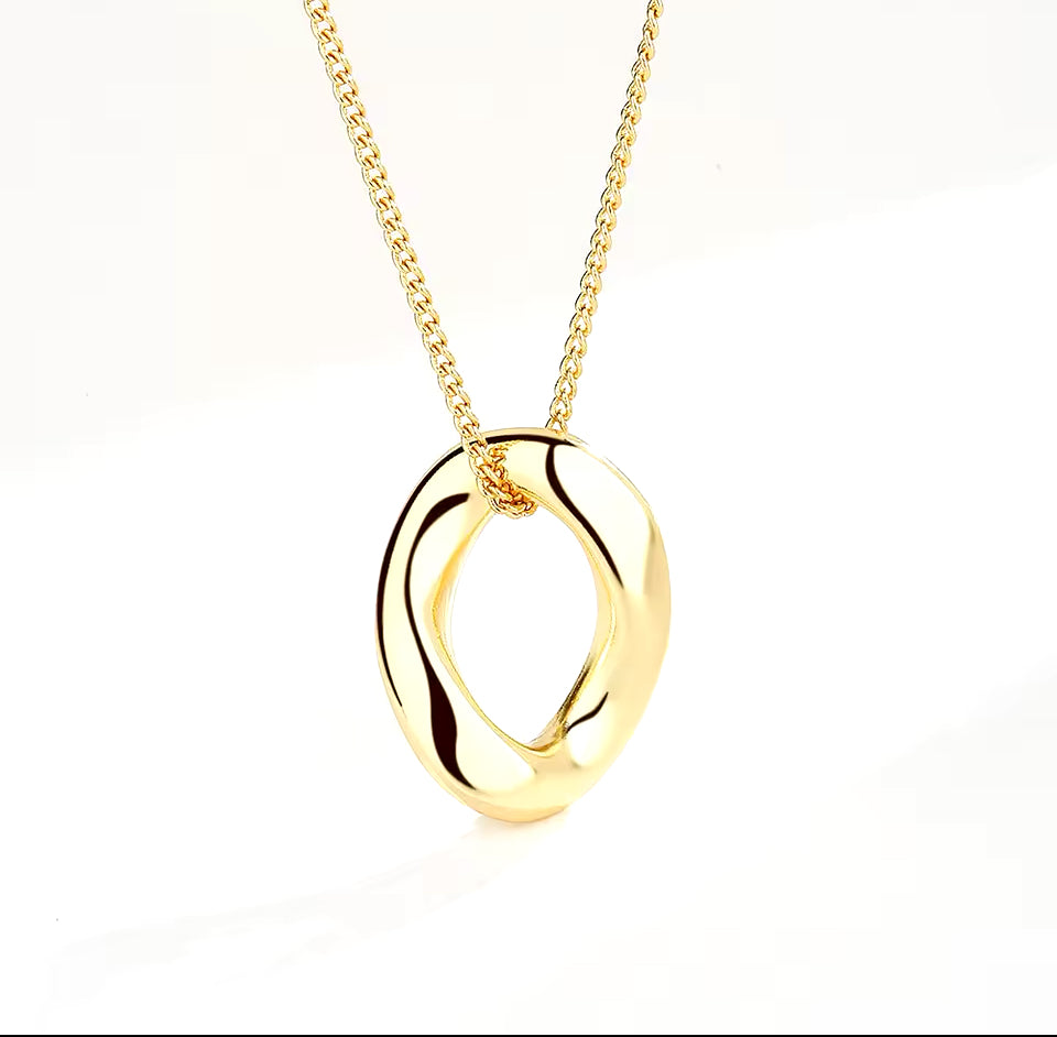 Irregular hoop pendant with a minimalist and delicate chain.