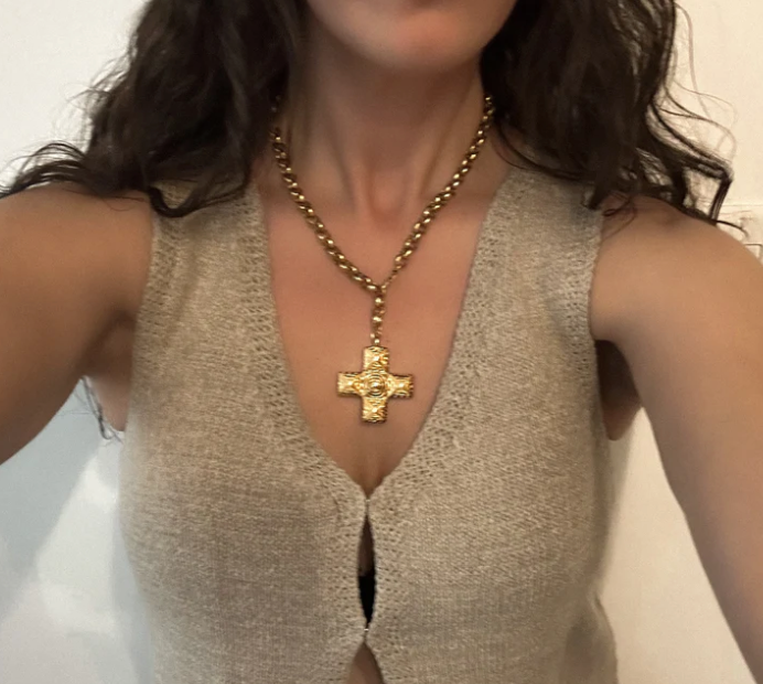You'll stand out with our 18K gold plated oversize cross pendant chain necklace, with a touch of bohemian luxury, you will catch everyone's attention anywhere. Thanks to its elaborate cross pendant and thick and striking chain, you can wear it in different lengths, from a choker to a longer necklace.