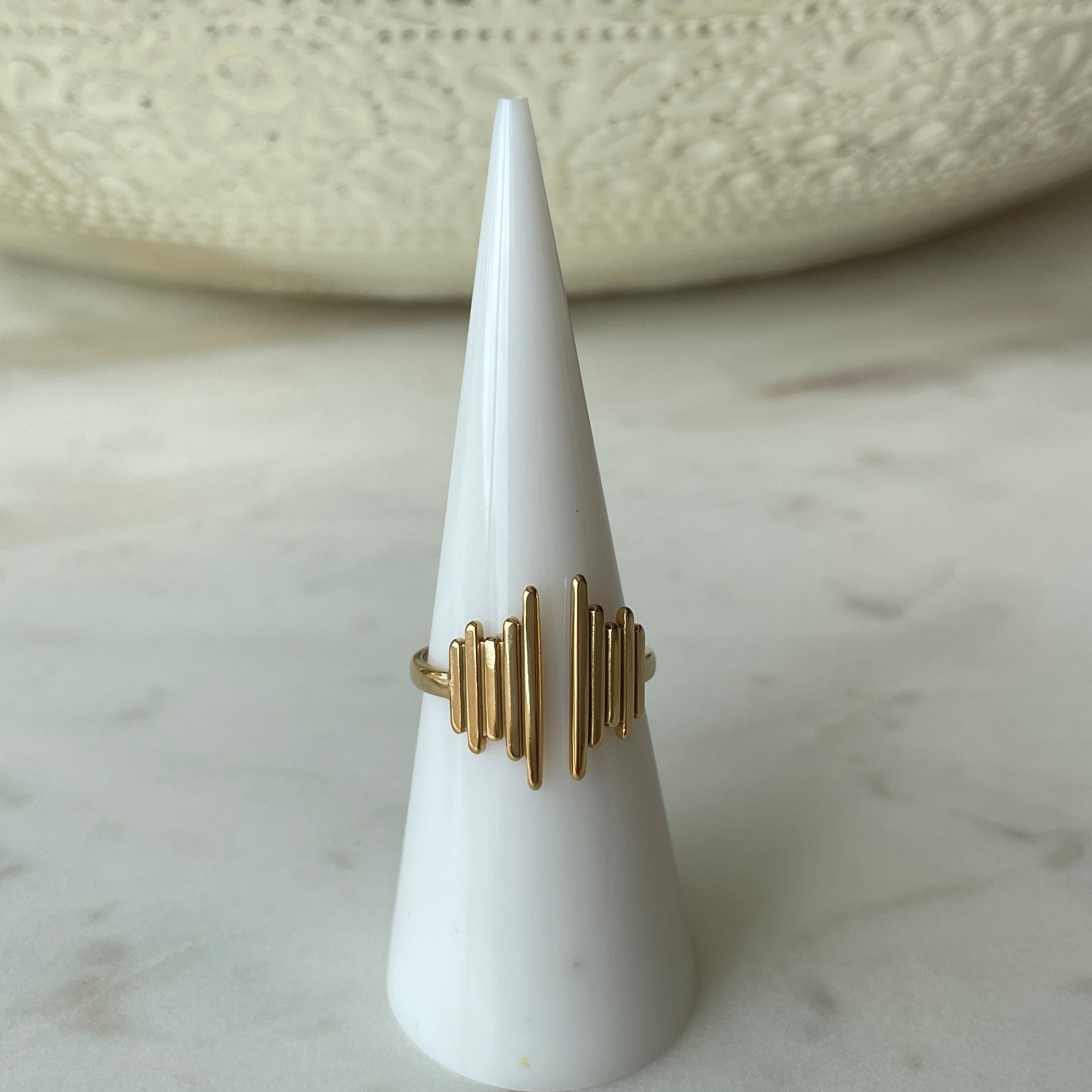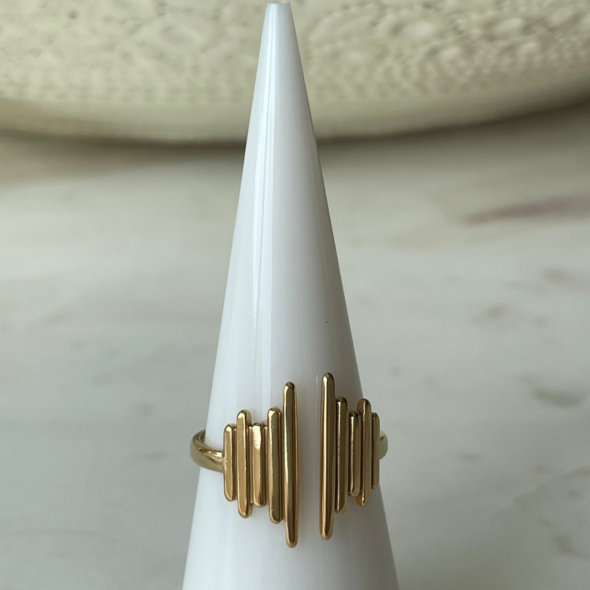 This minimalist piece is sure to turn heads and make a statement. Whether worn alone or paired with other rings, it exudes a stylish vibe.Β